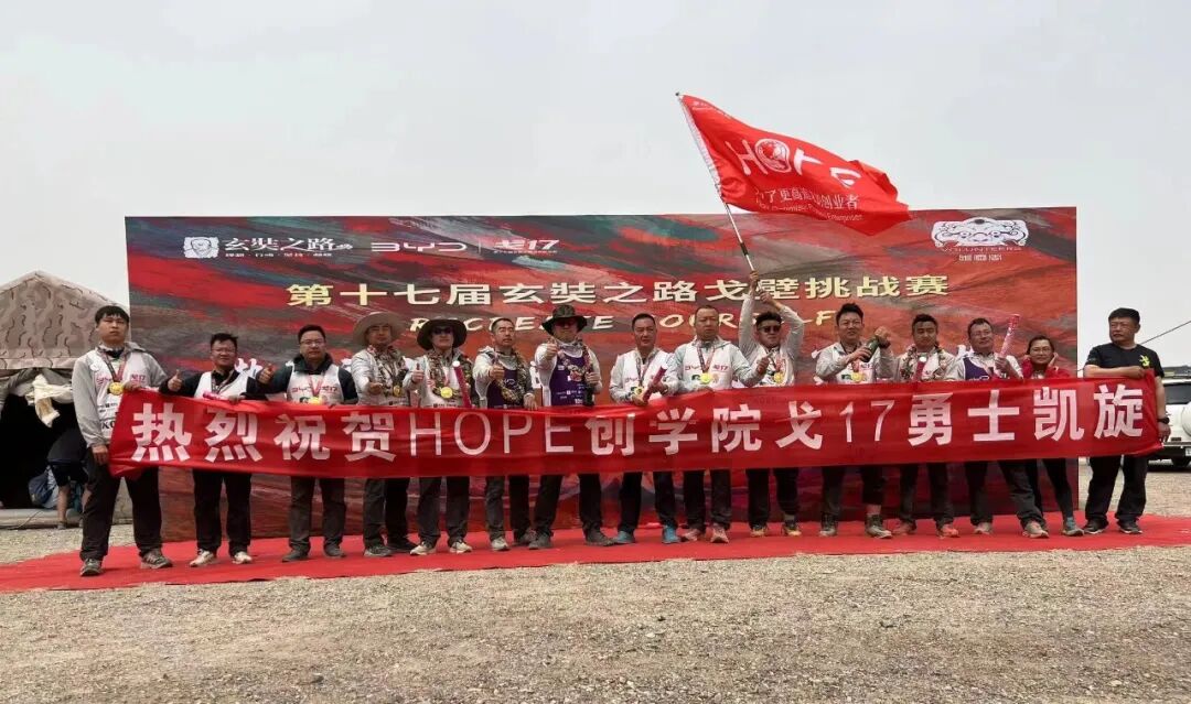 HOPE创学院在李书文院长的带领下成功完成挑战,终点的彩旗招展,是在拥抱一路前行的勇士,他们掺杂着风沙的汗水,是不屈精神的结晶。