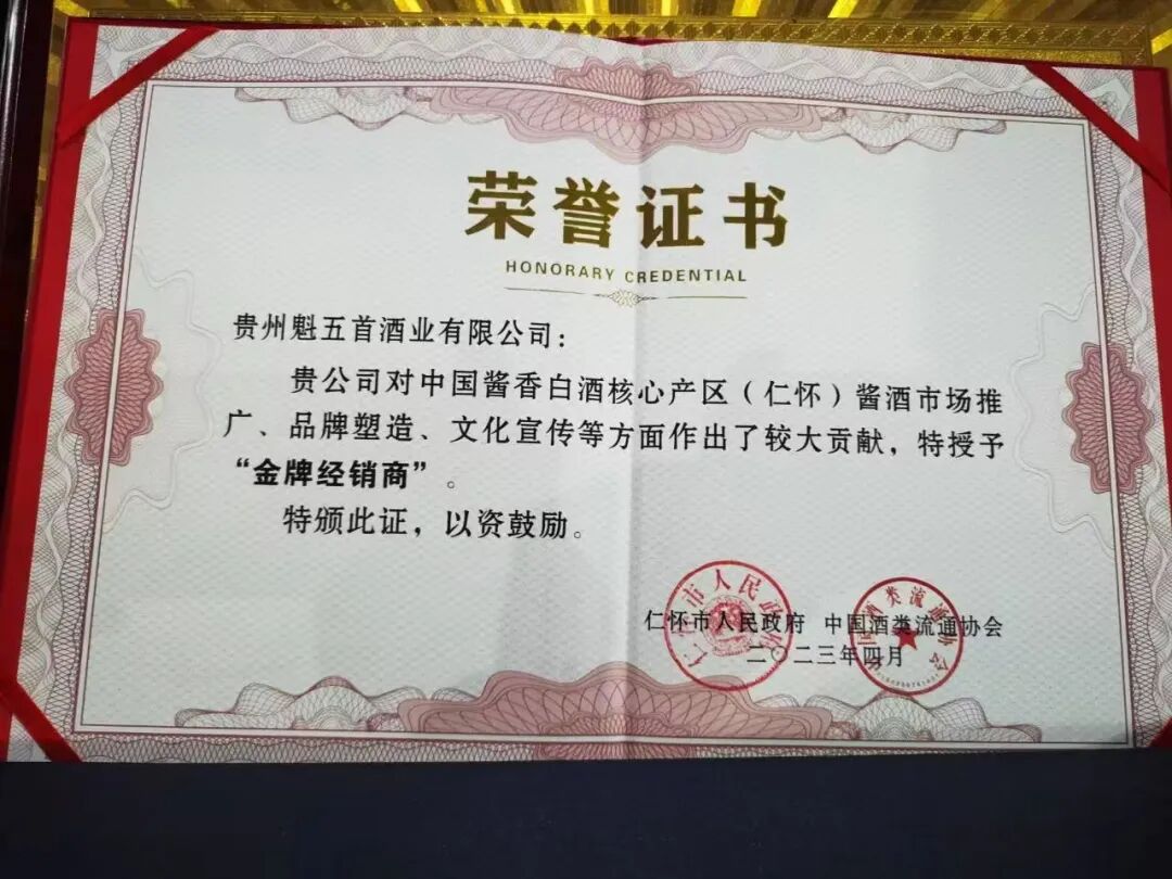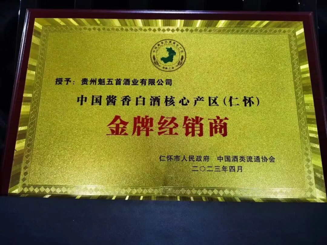 魁五首荣获“中国酱香白酒核心产区(仁怀)金牌经销商”荣誉称号